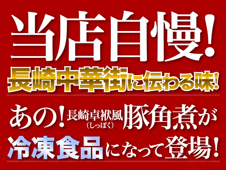 長崎卓袱風冷凍豚角煮当店の豚角煮は、甘みのある上質な肉質の皮付三枚豚バラ肉を厳選使用。